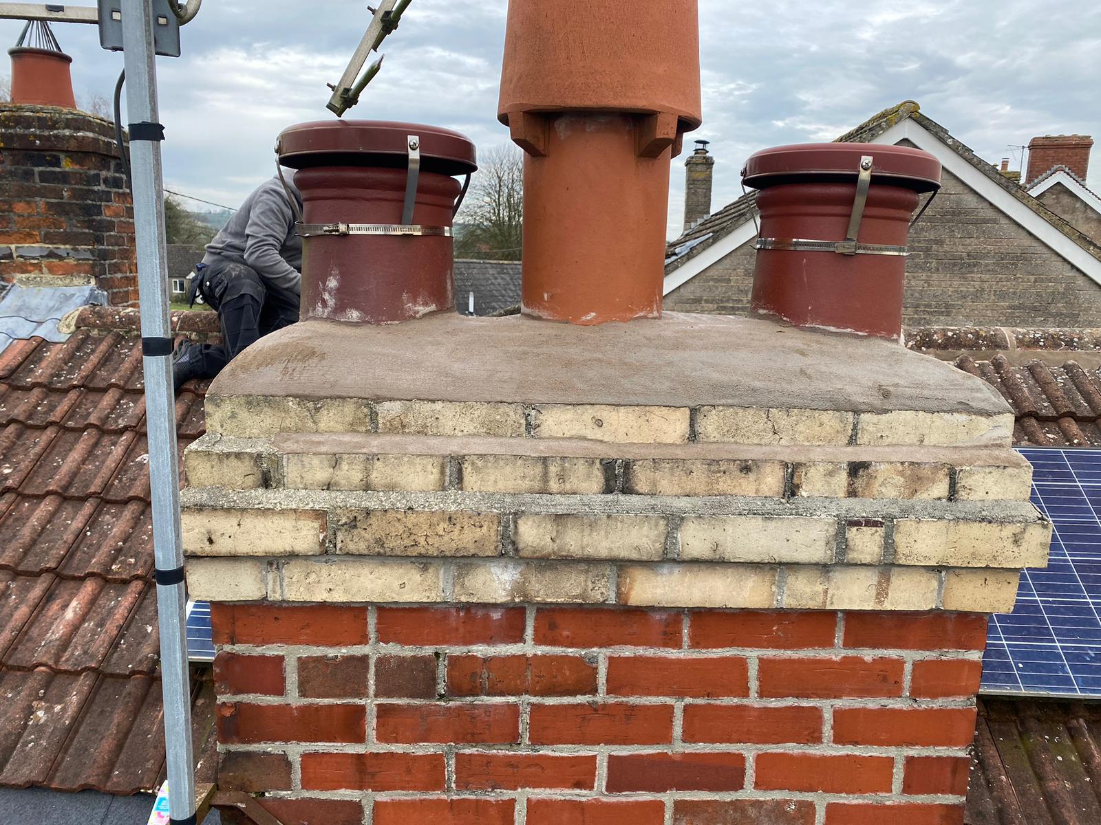 Repoint and restore chimney brickwork to prevent moisture ingress and structural damage.